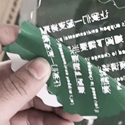 - Resistencia climática debilitada: Las impresiones exteriores fallan rápidamente: Los monómeros inferiores y el exceso de solventes destruyen la resistencia UV y las propiedades antienvejecimiento de la tinta. Señales exteriores o impresiones en fachadas de vidrio pueden amarillear, agrietarse o descascarillarse en solo 3–6 meses, contradiciendo totalmente la promesa de las tintas UV de «rendimiento duradero al aire libre».